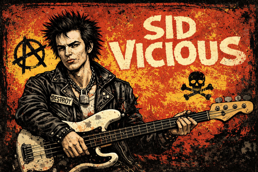⬇️AIに書いてもらったシド・ヴィシャス(ちゃんとシドチェーン装着)